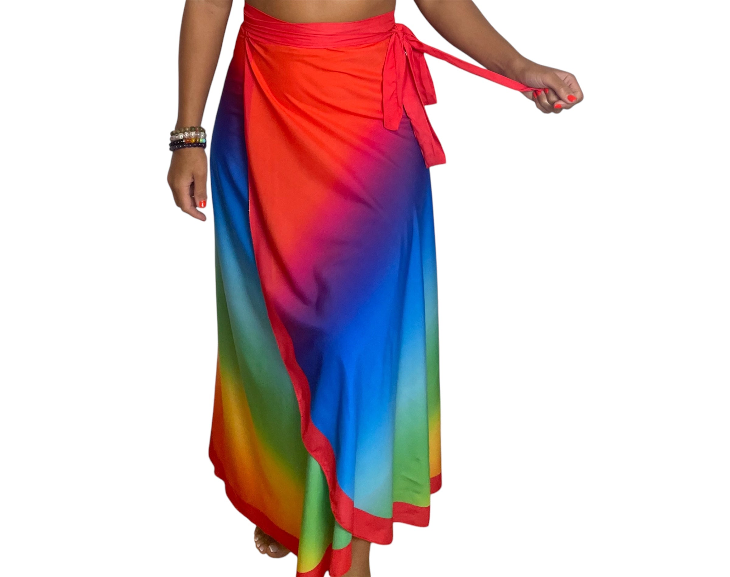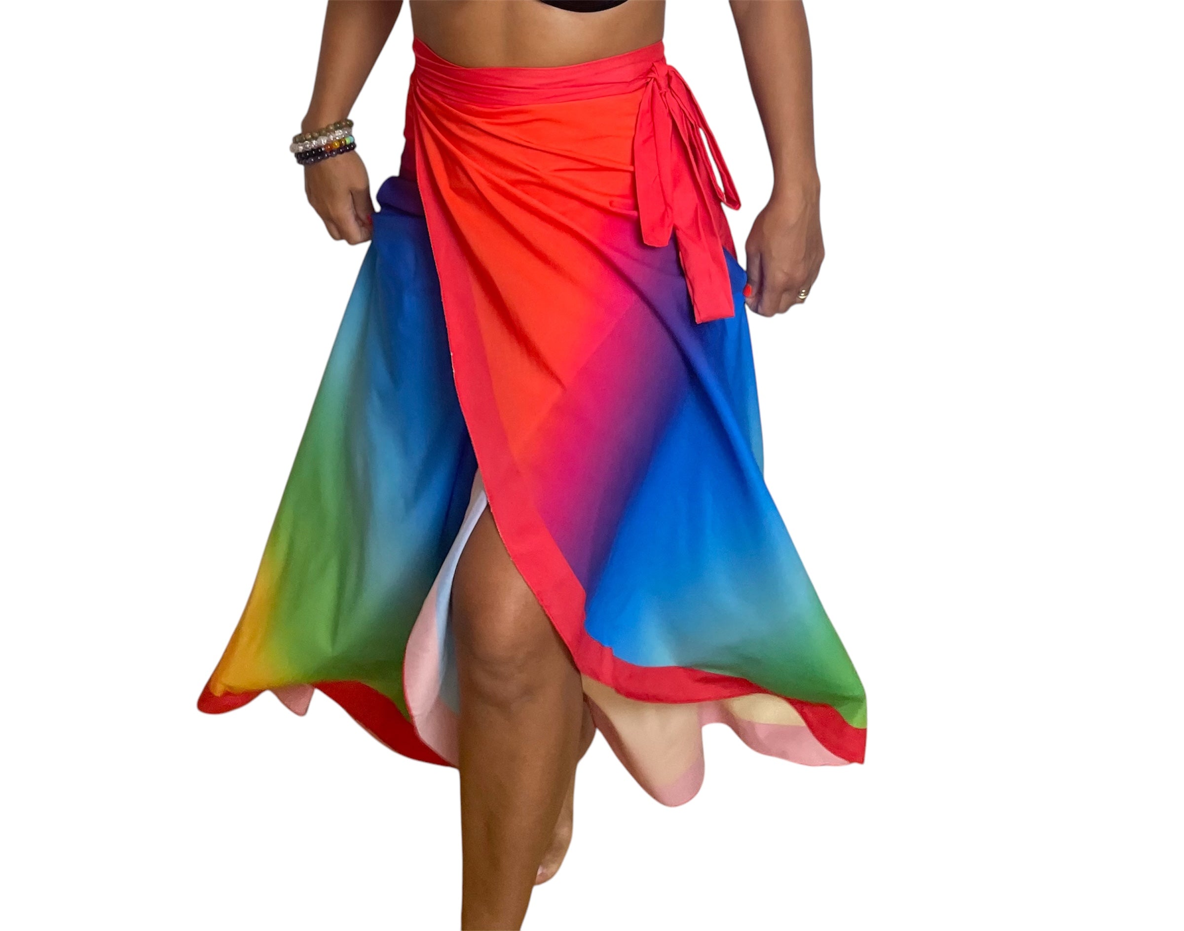De talla única adaptable, se ajusta con facilidad a distintos tipos de cuerpo gracias a sus largas tiras para atar. Versátil y lleno de personalidad, puedes usarlo como falda, vestido o pañuelo, según tu estilo.
