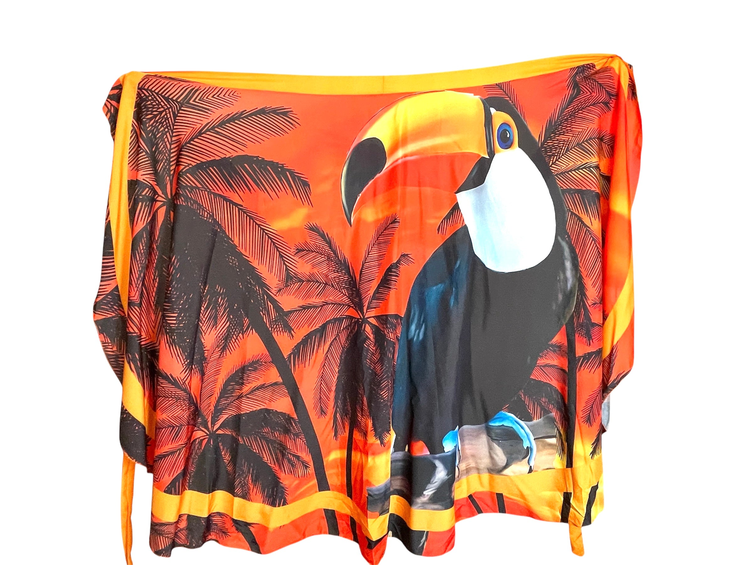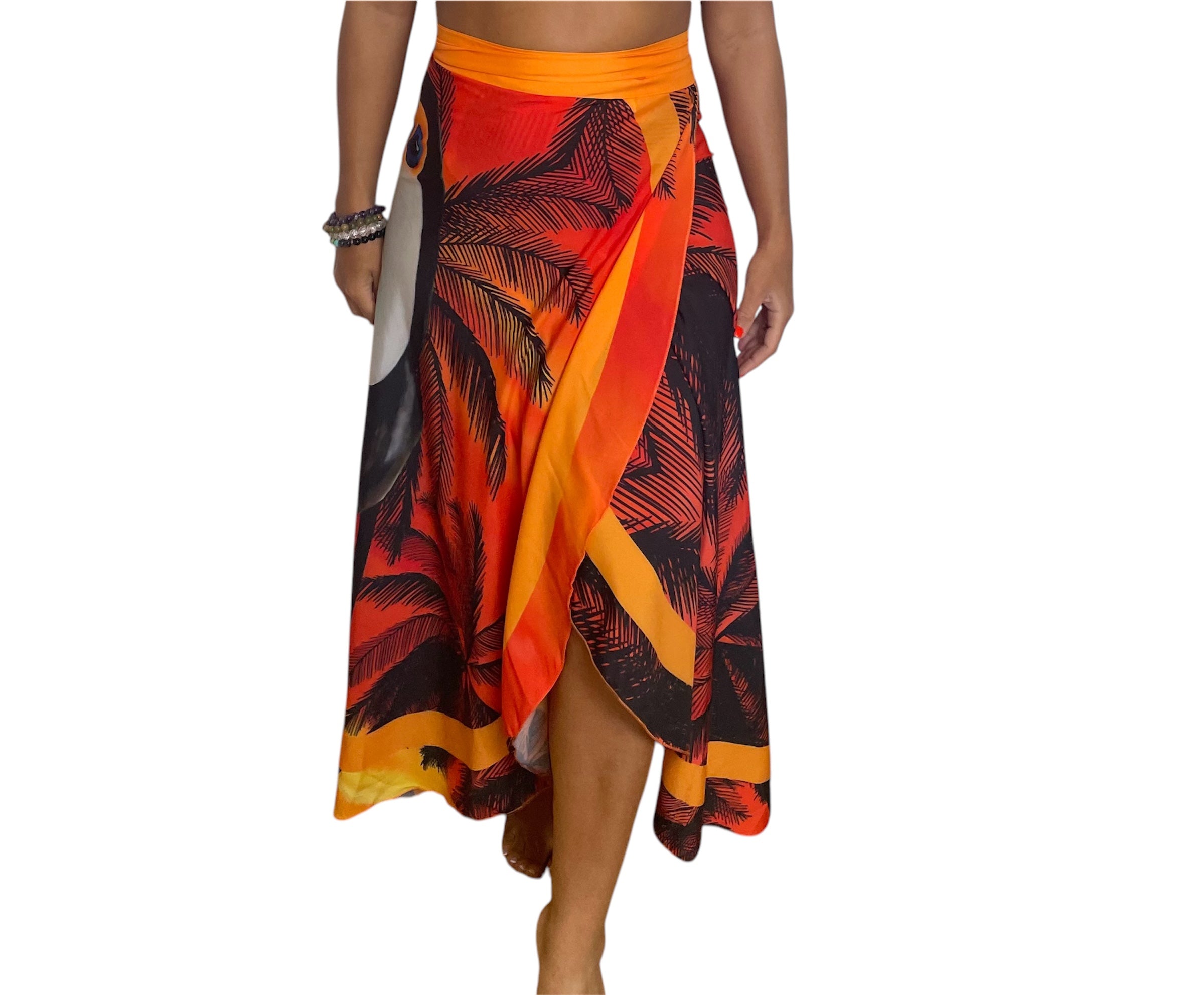 Ligero como la brisa y suave al tacto, este pareo falda está confeccionado en un tejido delicado con un sutil toque de seda. De secado rápido y con una caída fluida, es ideal para acompañarte en tus días de sol y playa. Su estampado tropical en colores vibrantes transmite alegría, energía y una profunda conexión con la naturaleza.