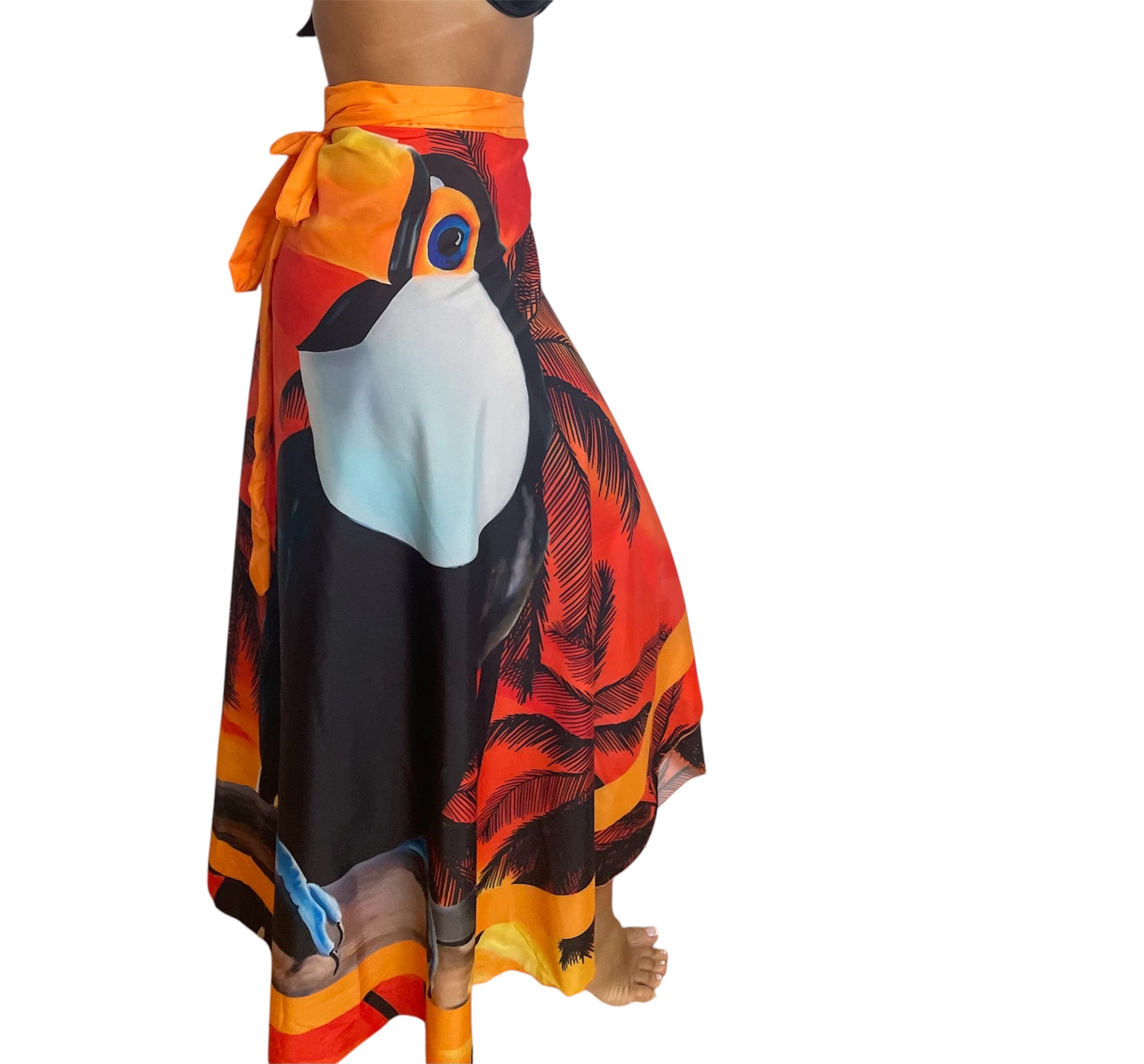 De talla única adaptable, se justa con facilidad a distintos tipos de cuerpo gracias a sus largas tiras para atar. Versátil y lleno de personalidad, puedes usarlo como falda, vestido o pañuelo, según tu estilo.